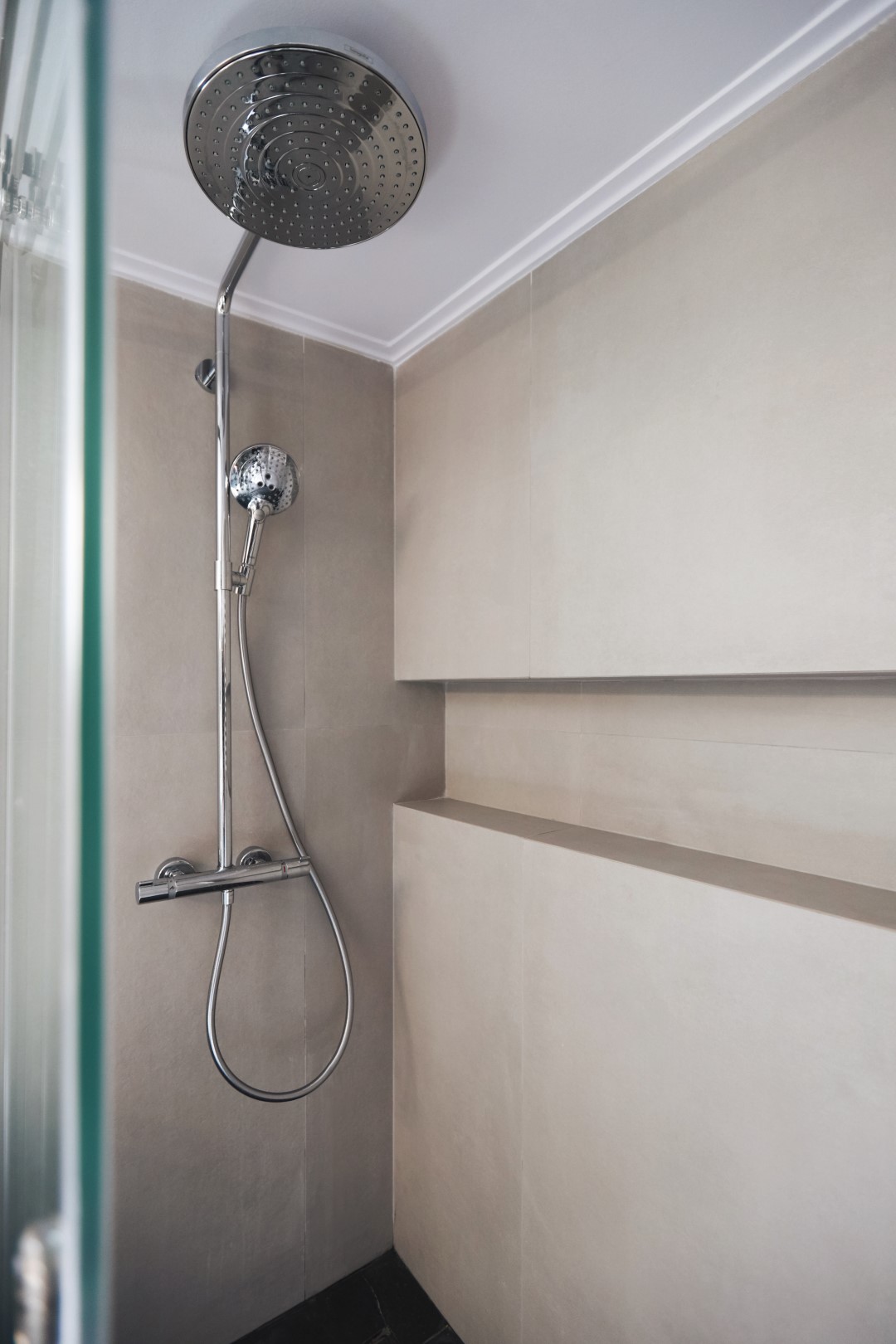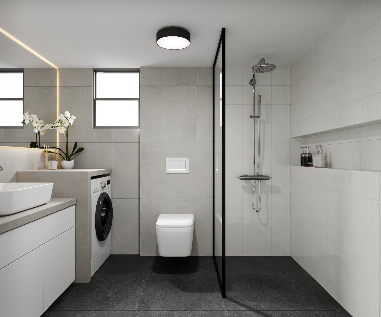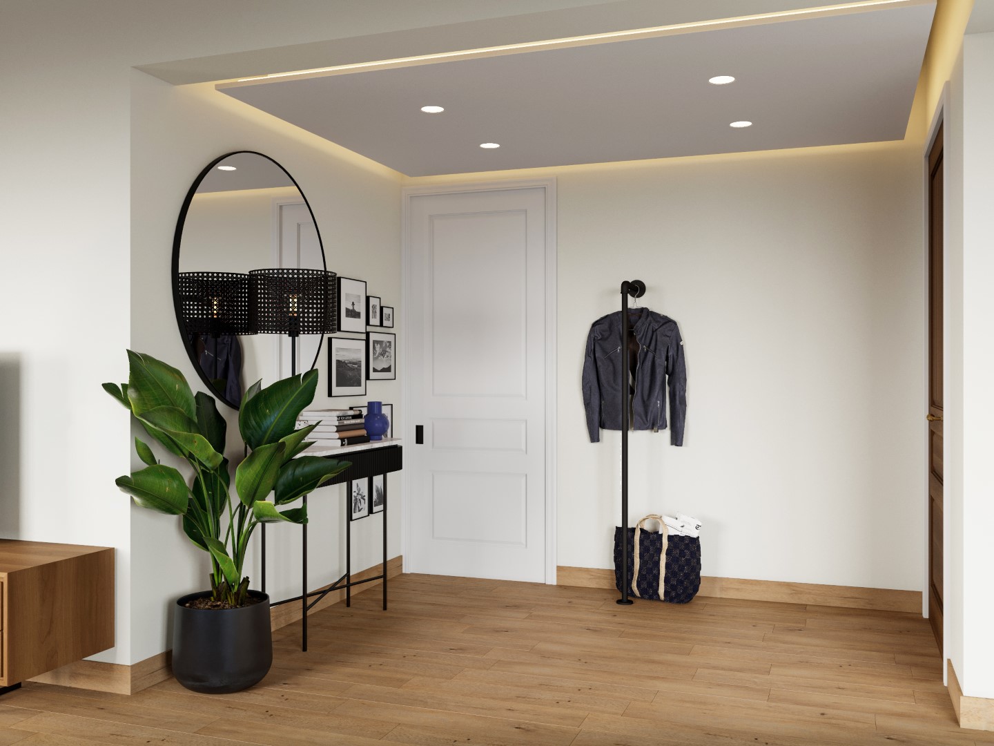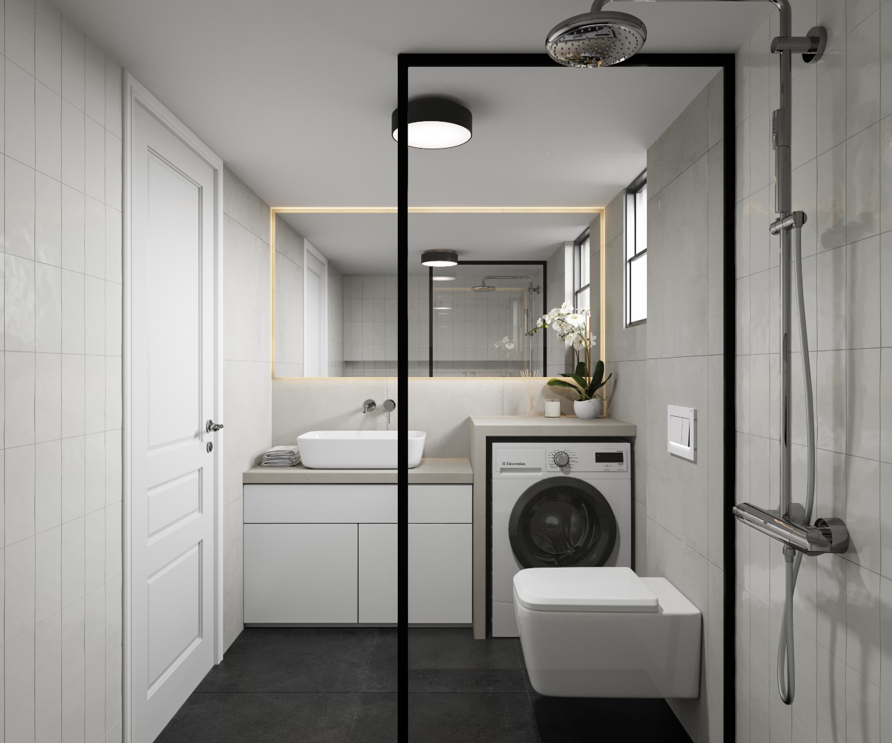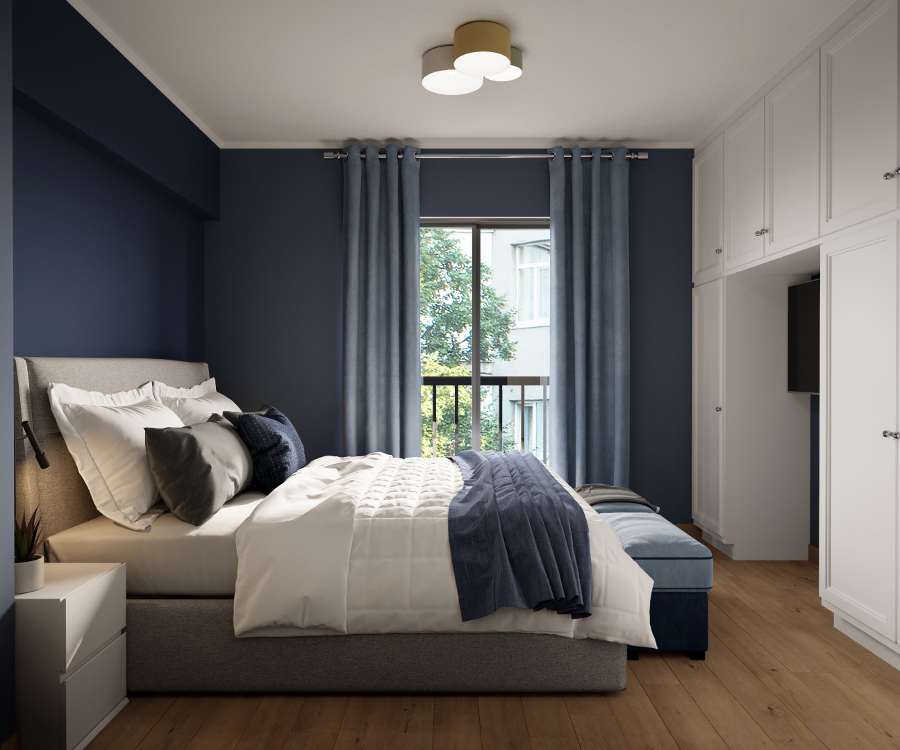Η μίνιμαλ διάθεση ενισχύθηκε με τον custom made σχεδιασμό των ντουλαπιών των υπνοδωματίων, με τα μονοκόμματα καθ’ ύψος φύλλα και τον διακριτικό φωτισμό στο εσωτερικό τους για περισσότερη ατμόσφαιρα και άνεση. Στόχος ήταν η δημιουργία ενός χώρου που αποπνέει μια εσωτερική ηρεμία σαν κι αυτή του ιδιοκτήτη του.