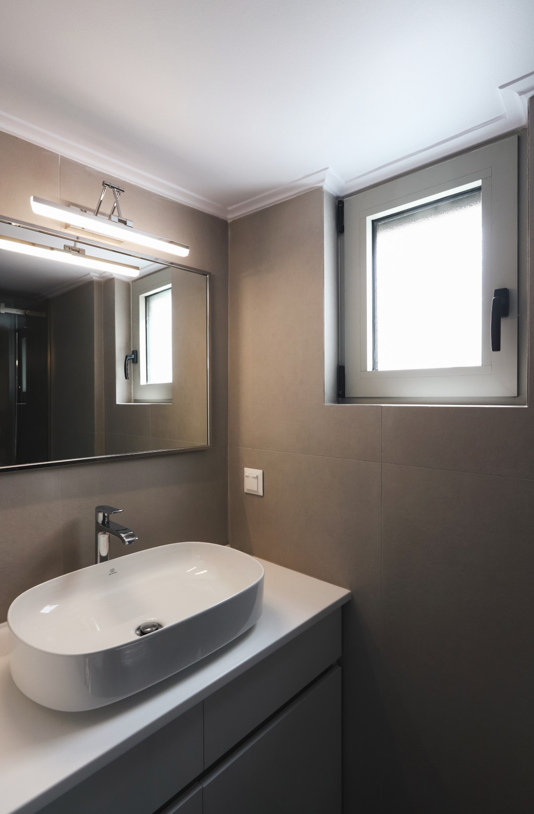 Το διαμέρισμα βρίσκεται στην Καστέλλα, σε μια πολυκατοικία στη πλαγιά του λόφου, με θέα το Μικρολίμανο, και το μόνο αίτημα του νεαρού ιδιοκτήτη προς την Άρτεμη ήταν να εφαρμοστούν στο χώρο γκρι και λευκές αποχρώσεις σε ένα σύγχρονο και βιομηχανικού τύπου εργένικο σπίτι.